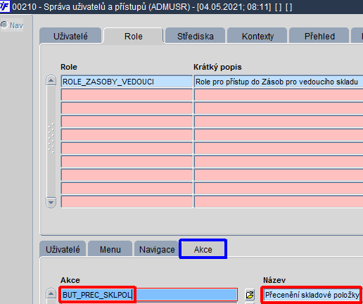 Obr. Položka "Role" ve formuláři 11008 - Správa uživatelských filtrů