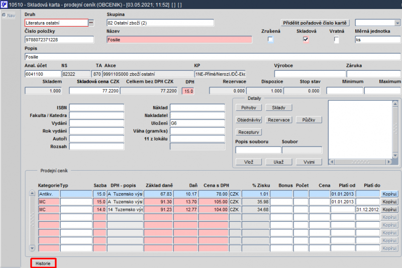 Kliknutím na datum a čas se zobrazí tehdejší verze souboru.