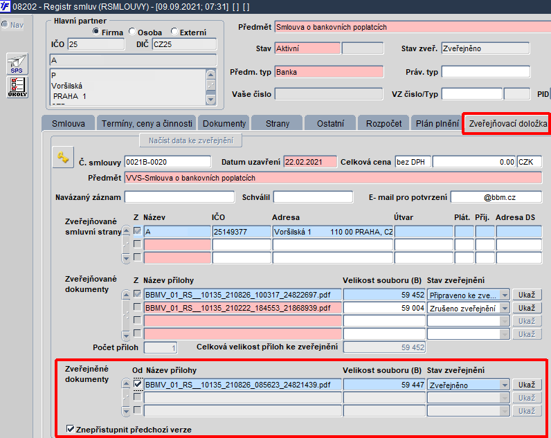 Kliknutím na datum a čas se zobrazí tehdejší verze souboru.