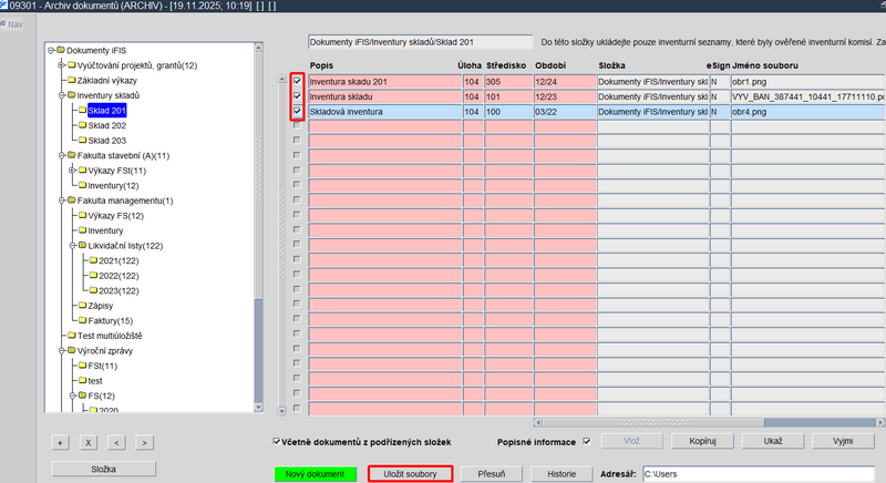 Kliknutím na datum a čas se zobrazí tehdejší verze souboru.