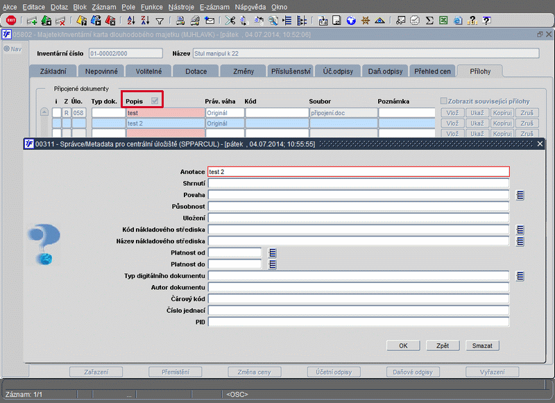 Kliknutím na datum a čas se zobrazí tehdejší verze souboru.