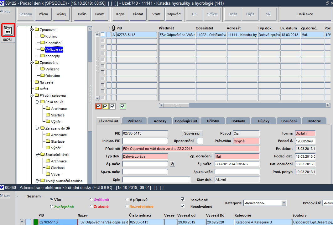 Kliknutím na datum a čas se zobrazí tehdejší verze souboru.