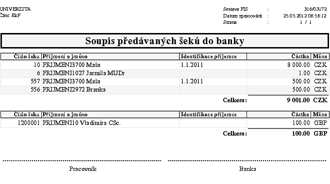 00316 - Soupis předávaných šeků do banky: Porovnání verzí