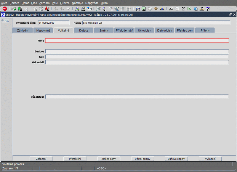 Tato funkce v sobě shrnuje téměř všechny možnosti práce s položkami investičního majetku.