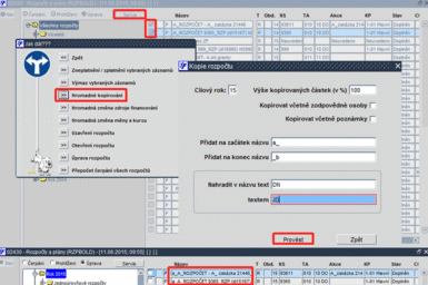 Obr. 02430/7 Rozpočty a plány - tlačítko "Servis" - hromadné kopírování
