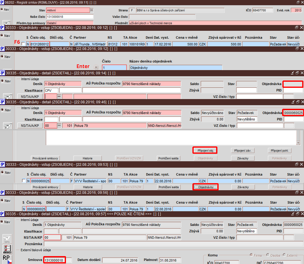 | '''Obr. 08202/5''' ''Připojení právě vytvořené objednávky přes tlačítko "Připojení objednávky" → klávesy F8 → F6'' | |||