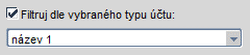 Tato funkce umožní vyfiltrovat rozpočty nastavené na vybrané typy účtu. Podmínkou pro tento filtr je, že je použitý příslušný typ účtu. Filtr vybere všechny rozpočty, na kterých je použitý příslušný typ účtu.