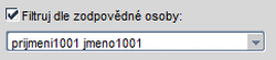Tato funkce umožní vyfiltrovat rozpočty nastavené na vybranou odpovědnou osobu. Podmínkou pro tento filtr je, že je příslušná osoba nastavena na rozpočtu ve formuláři 02434 - Zodpovědné osoby rozpočtu. Pro filtr není rozhodující, zda-li je vybraná osoba s příznakem "Hlavní osoby" či bez příznaku. Filtr vybere všechny rozpočty, na kterých osoba figuruje.