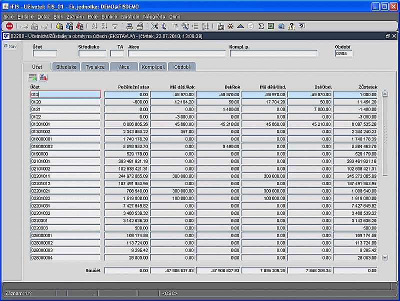 ==02200 * Zůstatky a obraty na účtech== | ==02200 * Zůstatky a obraty na účtech== | ||