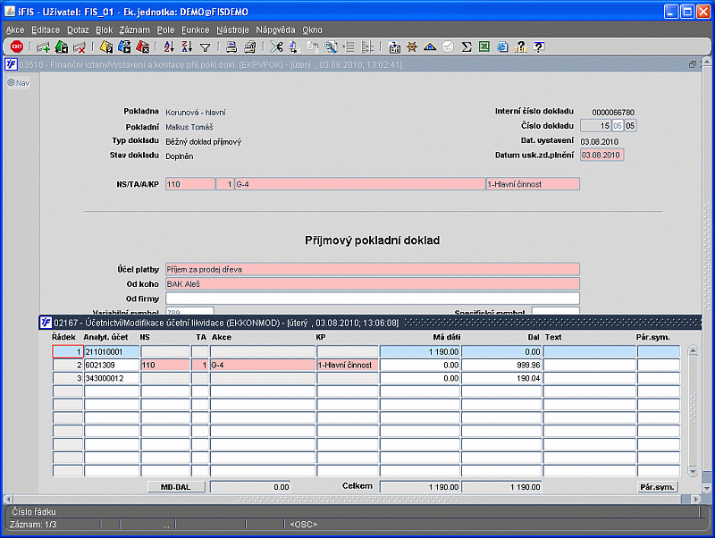 Obr. 03510/3 Kontace příjmového pokladního dokladu