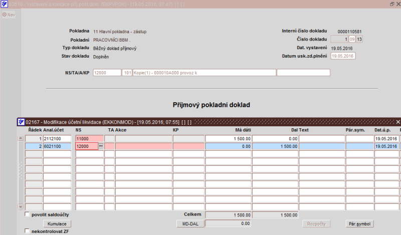Obr. 03510/3 Kontace příjmového pokladního dokladu
