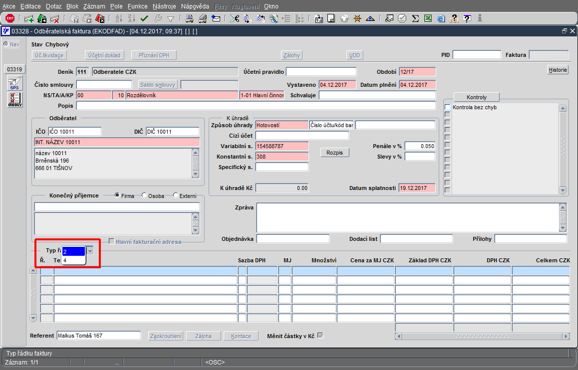 Obr. 03328/8 Pořízení odběratelské faktury - řádky typu 4