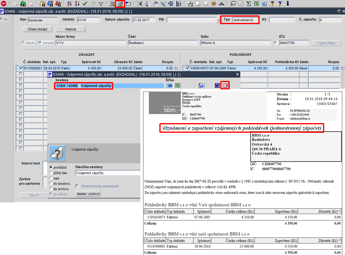| Pro prohlížení tiskových sestav ve formátu ISDOC a IFISDOC doporučujeme používat program Software602 Form Filler. |