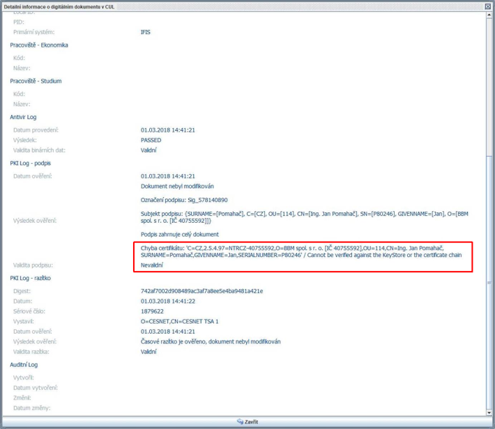 Další informace uvedeny v aplikaci Helpdesk č. 36341.