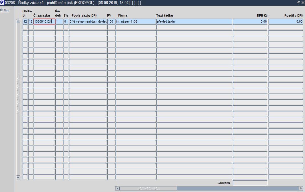 03208 * Řádky závazků - prohlížení a tisk