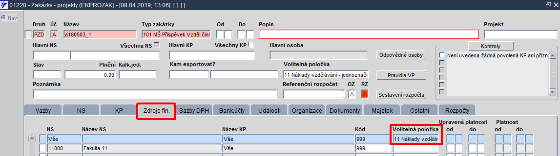 V '''detailu''' zakázek ve formuláři [[Man01220|01220]] - ''Zakázky - projekty'' na záložku ''Zdroje fin.'' '''doplněny''' nové '''položky''': | V '''detailu''' zakázek ve formuláři [[Man01220|01220]] - ''Zakázky - projekty'' na záložku ''Zdroje fin.'' '''doplněny''' nové '''položky''': | ||
