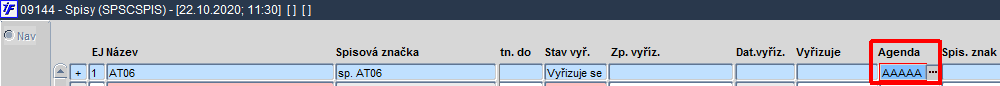 Obr. Položka "Agenda" ve formuláři 09144 - Spisy