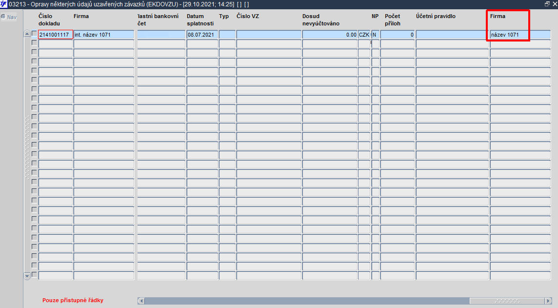 Obr. Nová položka "Firma" ve formuláři 03213 - Opravy některých údajů uzavřených závazků