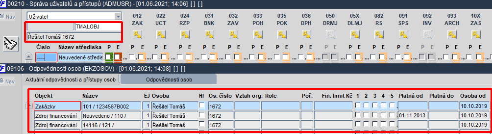Pokud ke konkrétnímu zdroji financování (ZF) není zaevidována odpovědná osoba, pak se za odpovědnou osobu považuje osoba zaevidovaná v hlavičce zakázky. Obvykle se tedy odpovědné osoby za zdroj financování (ZF) vyhledávají postupem: