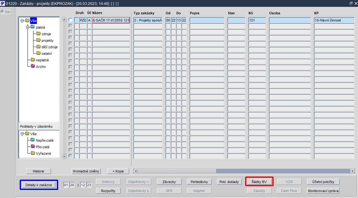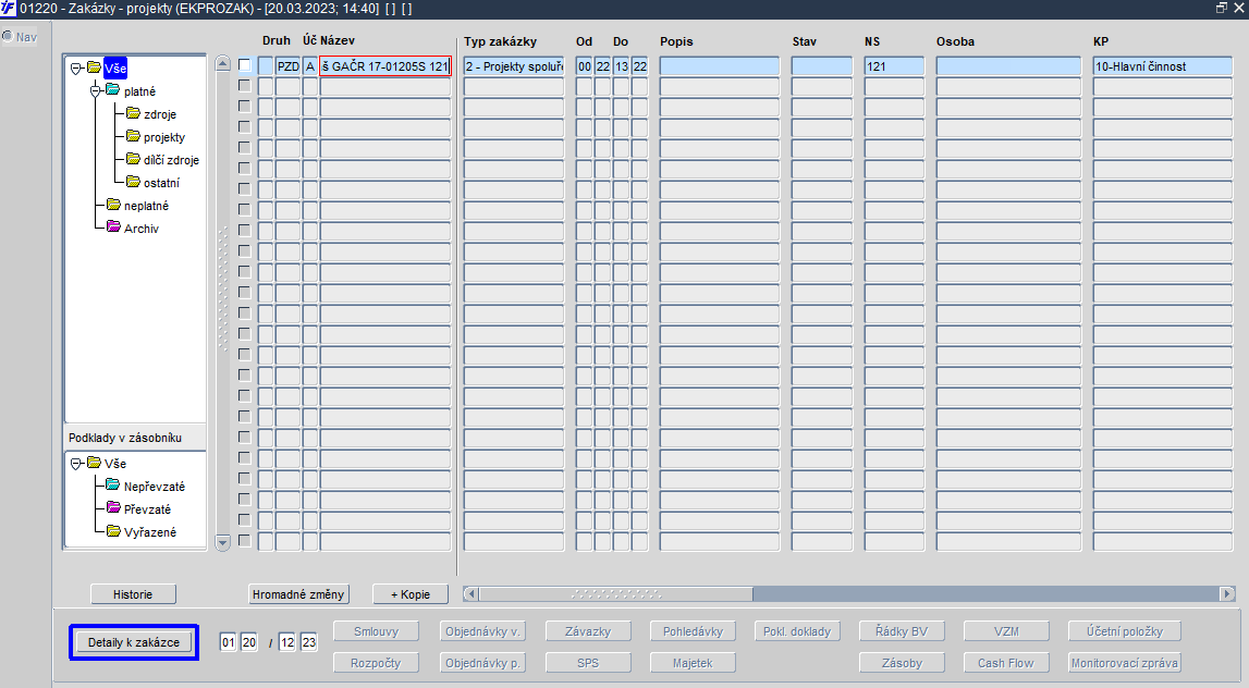 - Do formuláře 01220 - Zakázky - projekty přidány podmínky na proklik jednotlivých tlačítek aktivních po stisku tlačítka Detaily k zakázce