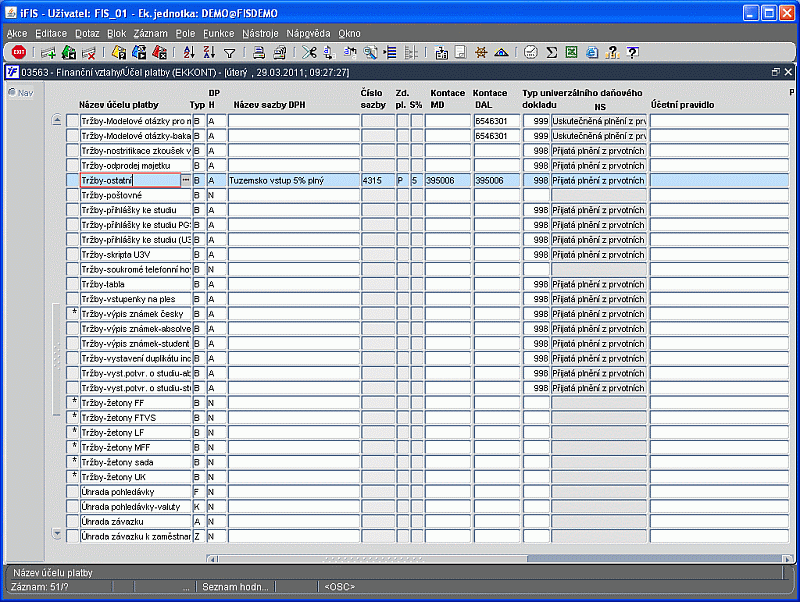 Typ univ. daň dokladu určuje, do kterého typu daňových dokladů bude přenášen podklad pro přiznání k DPH.
