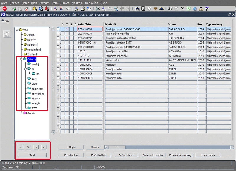 • umožňují uživateli libovolně seskupovat související smlouvy do složek pomocí tzv. odkazů (např. šanonování všech smluv týkající se výstavby nového pavilonu)
