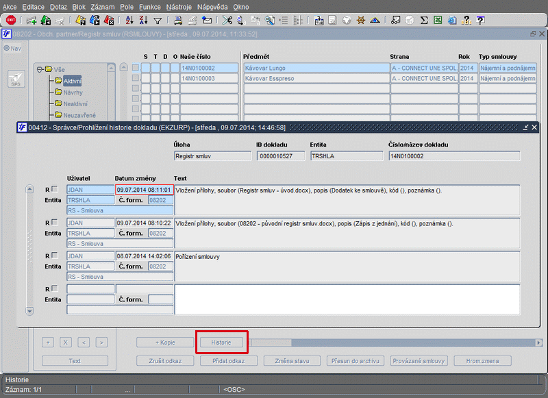 - Přesun do archivu (Vyjmutí z archivu) - přesune smlouvu do archivu/vyjme smlouvu z archivu