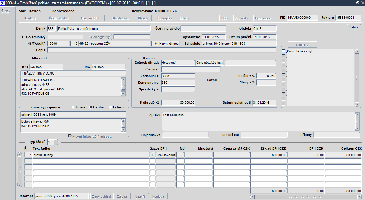Obr. 03344/1 Prohlížení pohledávky za zaměstnancem