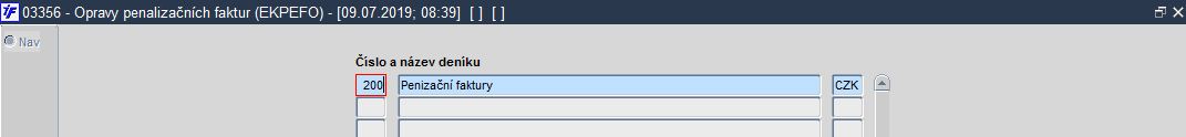 Obr. 03356/1 Opravy penalizačních faktur - spuštěno z funkce 03355 - Podklady pro penalizaci - výběr deníku pro penalizaci
