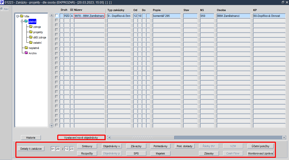 • Do formuláře 01220 - Zakázky - projekty přidány podmínky na proklik jednotlivých tlačítek aktivních po stisku tlačítka Detaily k zakázce