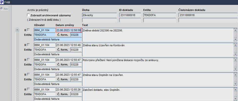Kliknutím na datum a čas se zobrazí tehdejší verze souboru.
