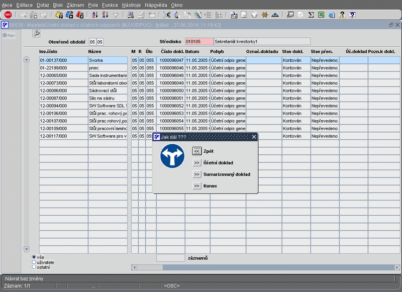 Obr. 05530/2 Vytvoření účetního dokladu z úlohy účetní odpis investičního majetku