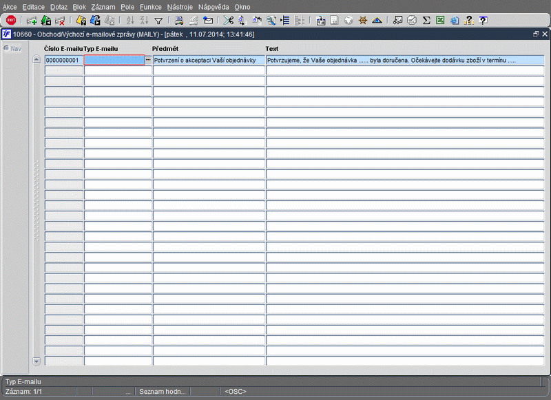 Formulář slouží pro správu e-mailových zpráv. Tento číselník je určen pro práci s e-mailovými zprávami v modul iFIS* Objednávky a iFIS* Zásoby.