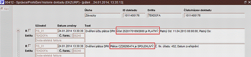 Obr. 00240/5 Provedení kontroly spolehlivosti a bankovního účtu plátce DPH