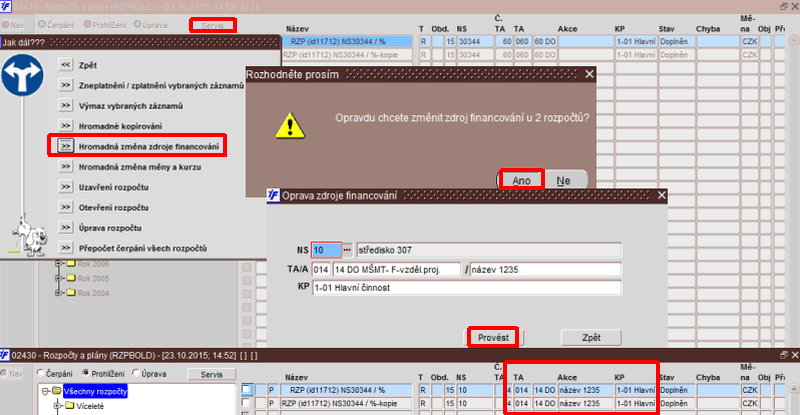 Obr. 02430/3 Tlačítko "Servis" - Hromadná změna zdroje financování