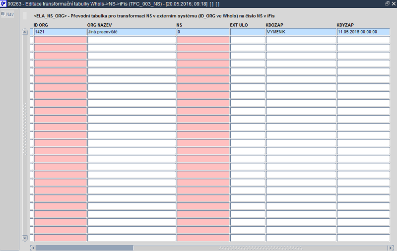 00263 * Editace transformační tabulky Whols->NS->iFIS