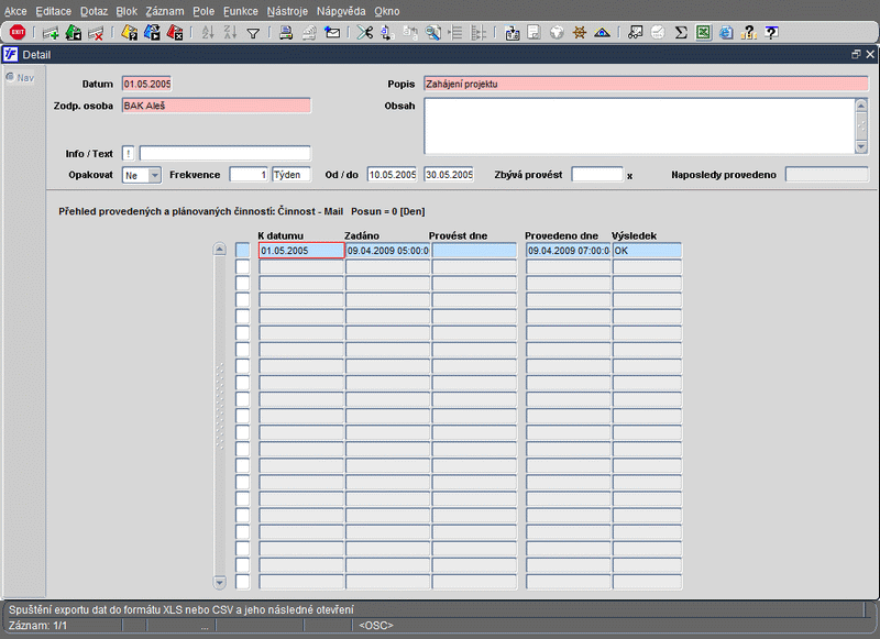- projekty - zobrazí všechny zakázky-projekty s druhem zakázky = AKT (Aktivita)