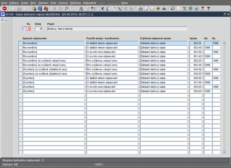 Obr. 05124/1 Číselník sazeb daňových odpisů
