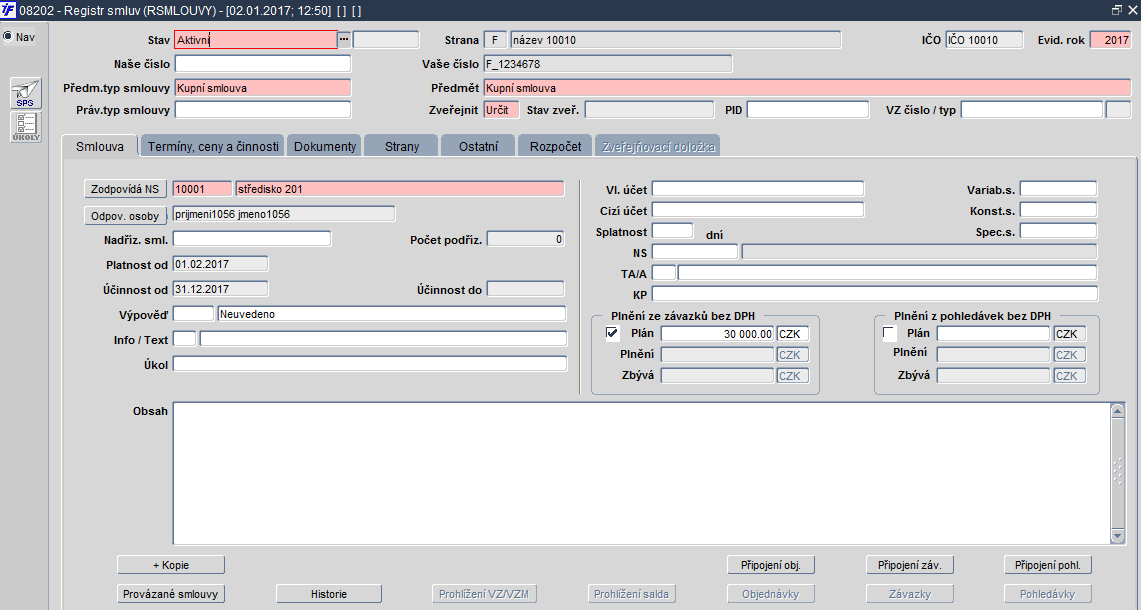 - zde je automaticky založena hlavní smluvní strana ze záhlaví smlouvy