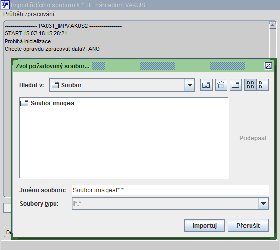 Slouží pro import seznamu obsahujícího položkový opis předaných souborů images za danou periodu a ke spárování platby realizované poštovní¨poukázkou s předaným souborem images. Předpokládá se, že soubor obsahuje podací znaky poštovních poukázek a názvy souborů images.