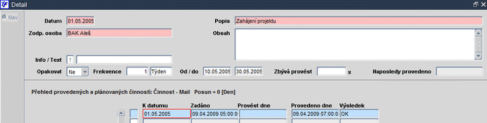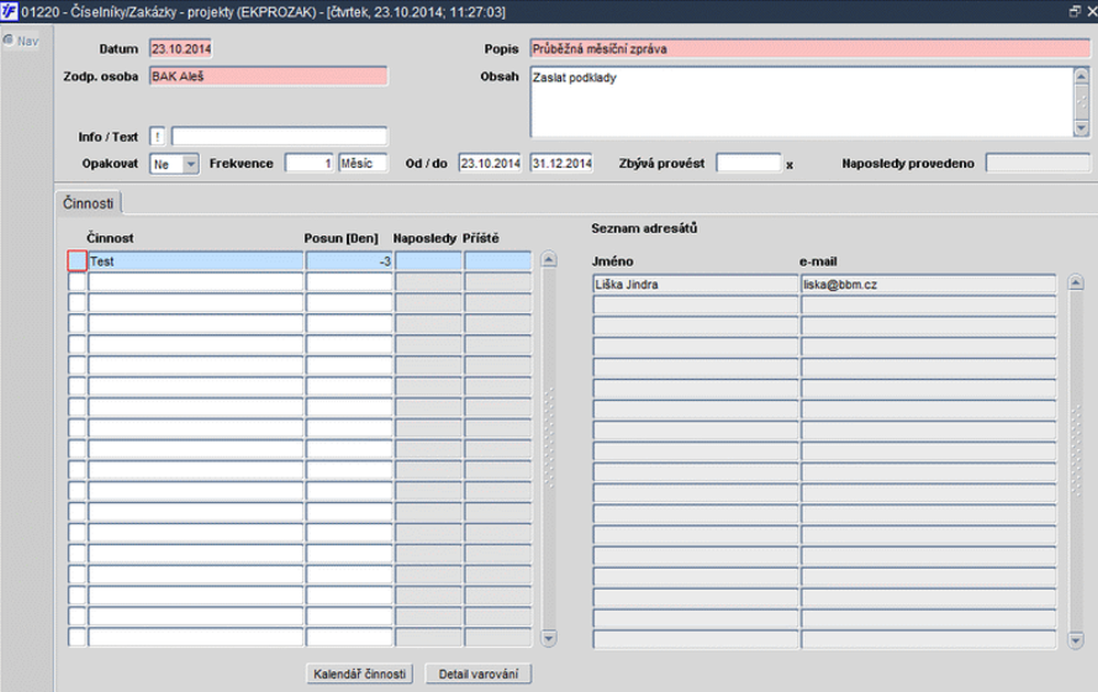 - projekty - zobrazí všechny zakázky-projekty s druhem zakázky = AKT (Aktivita)