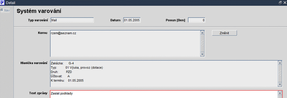 Obr. 01220/18 Události - detail varování