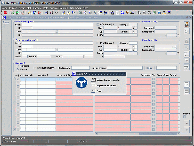- Prohlížení/Úprava - zde je poznat zda se jedná o úpravu rozpočtu a nebo o prohlížení - označeno pomocí zatrhávátka