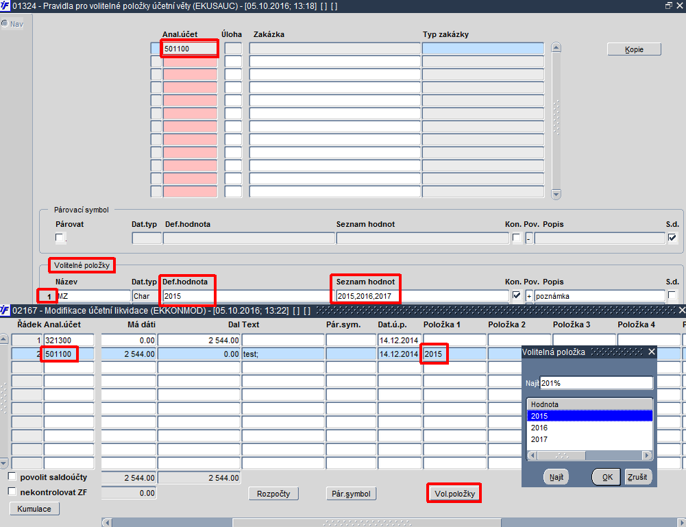Nastavení globálního parametru UCVPOL na obsah A,UUUUUUUUUUS určuje oprávnění ke změně pravidel pro párovací symboly a volitelné položky. Účetní si tak sami nemohou měnit pravidla pro volitelnou položku č. 10, neboť změnu může provést pouze správce systému.